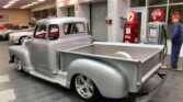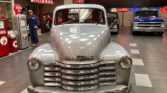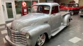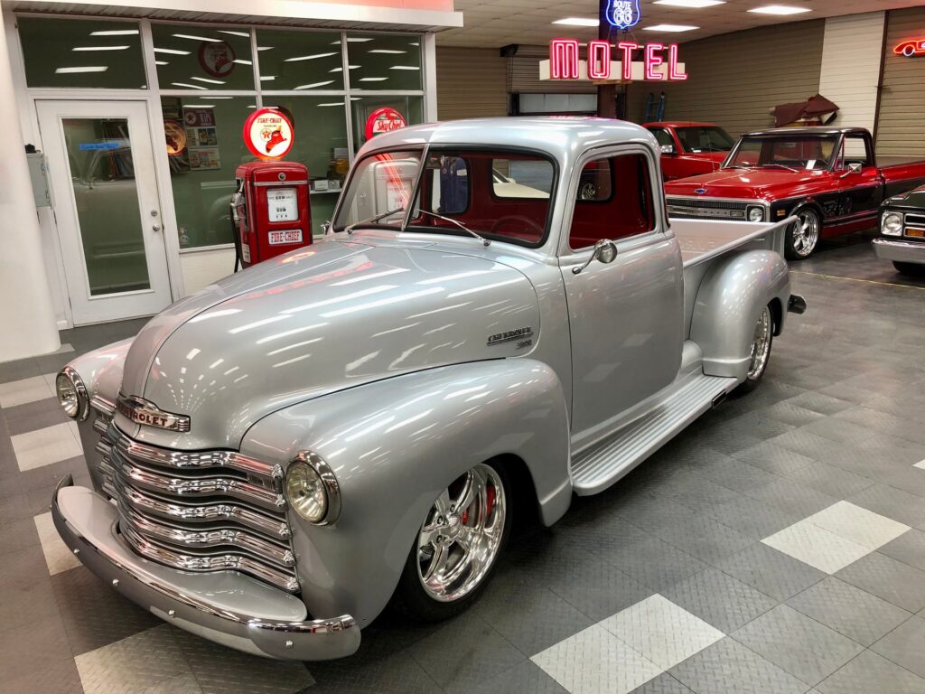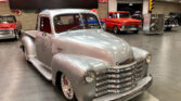 1951 Chevrolet 3100 resto-mod with GM 350 V8, Turbo 350 transmission, and Heidt’s IFS front suspension. Features Vintage Air, custom red leather interior, new oak bed, Wilwood brakes, and 18″ Billet Specialties wheels.